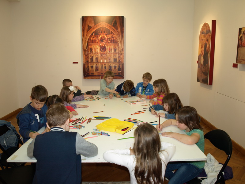 Na Veliki petak starija skupina djece iz Dječjeg vrtića Vedri dani došla je u posjet Galeriji. Djeca su pogledala cijelu izložbu s velikim interesom, za nekoliko slika su sami tražili objašnjenje, aktivno su sudjelovali u ponuđenim aktivnostima i s radošću su bojali crtež za svoje obitelji, kao dar za Uskrs.