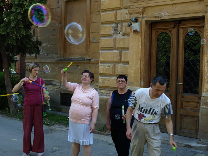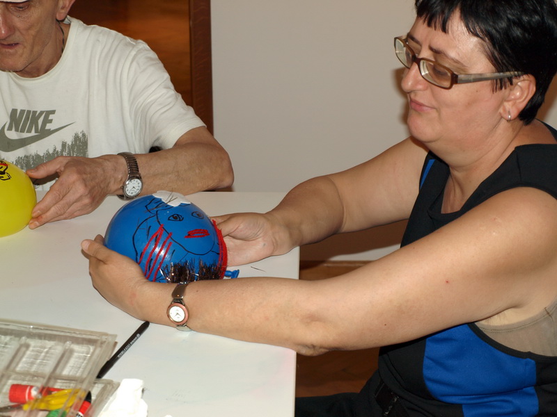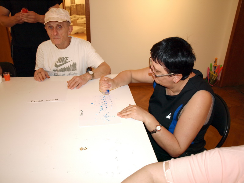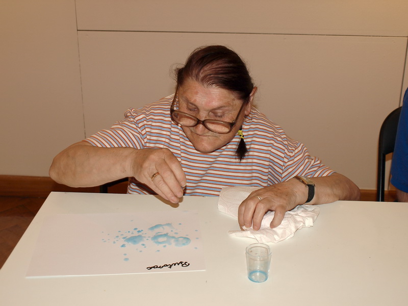 Mnoge su pojmove izrazili sudionici iz Doma za odrasle psihički bolesne osobe na prvoj radionici akcije VODA. Svatko je isprobao bojati s ledenim bojama, otkrio kako se uljne boje ne otapaju u vodi i kako potiču nastanak zanimljivih apstraktnih slika. Sudionici su također su aranžirali i svoju vlastitu maskotu koristeći vodene balone. Najzabavnije je, na kraju, bilo igrati se s mjehurićima...u dvorištu Galerije. Sve je bilo u vezi s vodom.